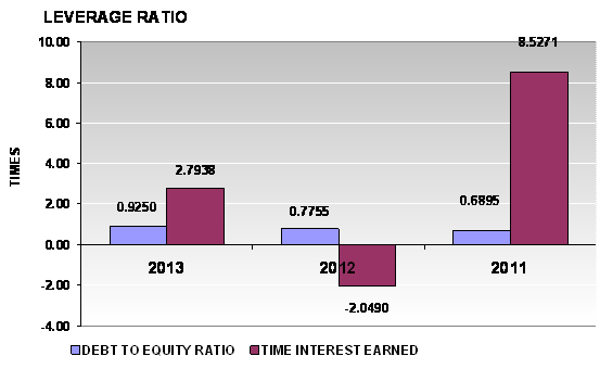 times in 2013 and 2012 respectively. This ratio is determined by dividing total