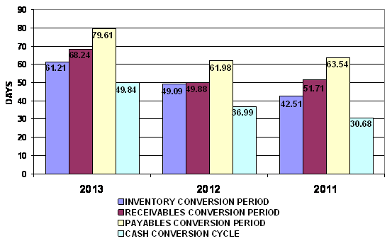 end of 2012 to 61 days at the end of 2013. This represents a negative trend.
