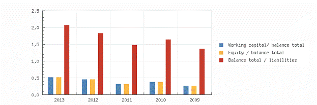 The total assets of the company decreased with -26.55 % between 2011 and 2012. The asset reduction is in contrast with the equity growth of 1.62 %. Due to this the total debt decreased with -40.41 %.