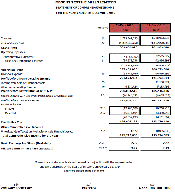 Income Statement : |