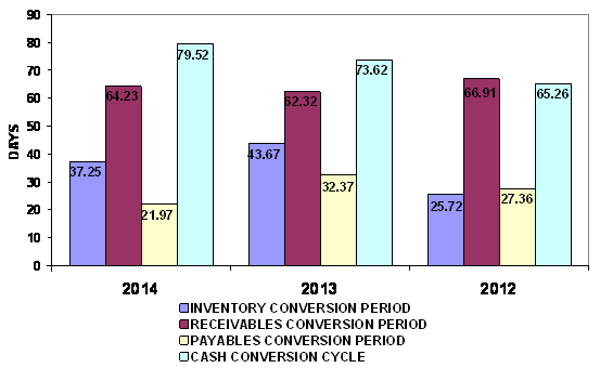 And Inventory turnover has increased from 8.36 times in year 2013 to 9.8 times