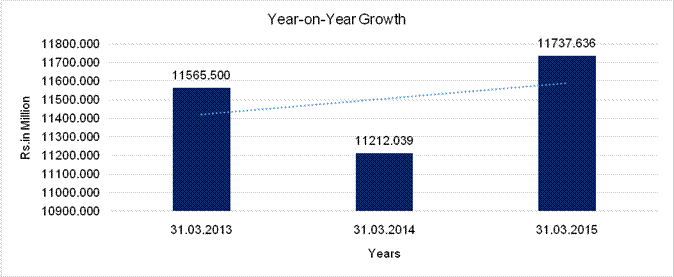 increased sales turnover from Rs. 12385.000 million in FY14 to Rs. 13042.000