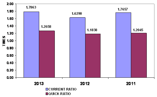 calculated as 1.61 times and 1.59 times in 2013 and 2012 respectively. This