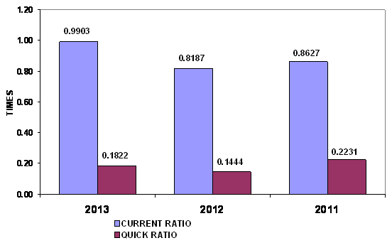 times in 2013 and 2012 respectively. This ratio is determined by dividing total