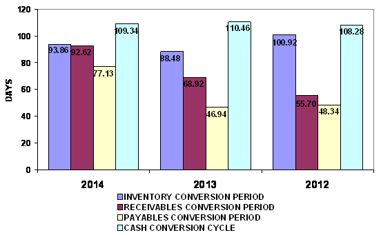 end of 2013 to 94 days at the end of 2014. This represents a negative trend.