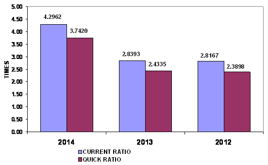 times in 2014 and 2013 respectively. This ratio is determined by dividing total