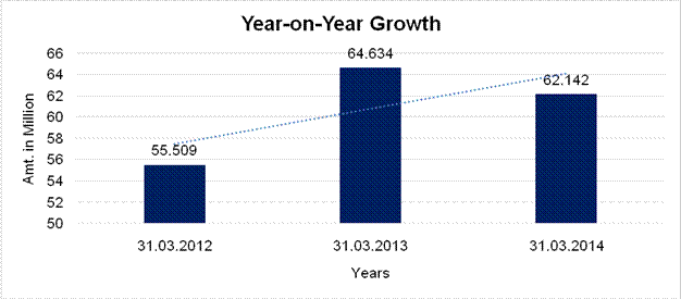 Subject is an established company having moderate track record. For the financial year 2014, sales turnover the company has declined