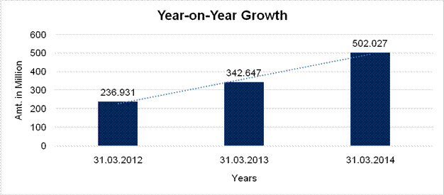 Subject is an established company having moderate track record. For the financial year ended 2014, the company has reported topline growth
