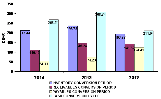decreased from 237 days at the end of 2013 to 212 days at the end of 2014. This