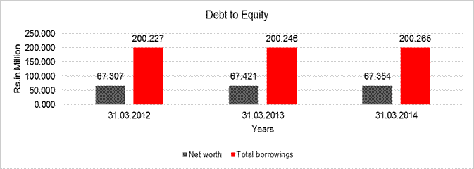 3544.200 Million and Rs. 0.114 Million respectively in FY2013. Rating is constrained on company moderate capital structure marked by