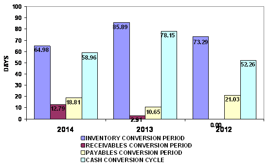 And Inventory turnover has increased from 4.25 times in year 2013 to 5.62 times
