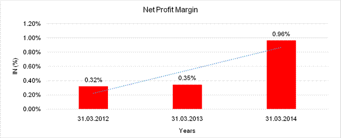 sales turnover marked by profit margins of 0.96%. However, the company has small net worth base, low cash reserves