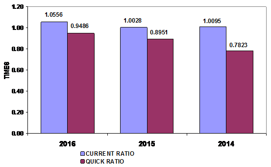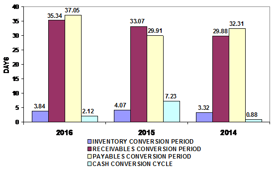 in 2016 and 2015 respectively. This ratio measures the efficiency of the
