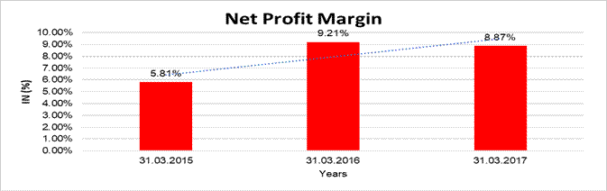 As per the financials of March 2017, the company has registered decline in its revenue as compared to its previous year’s revenue and has reported good profit margin of 8.87% under review.