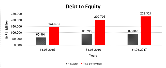 of the company marked by sufficient networth base along with comfortable debt