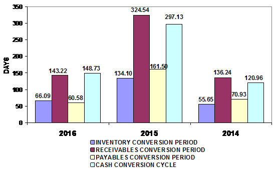 decreased from 134 days at the end of 2015 to 66 days at the end of 2016. This