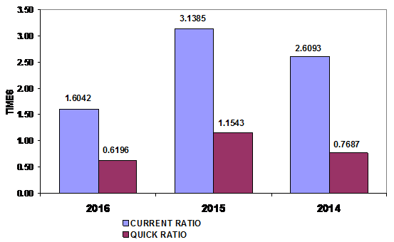are to cover current liabilities. The company's figure is 0.62 times in 2016,