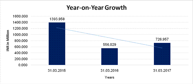 growth in its revenue as compared to its previous year along with average