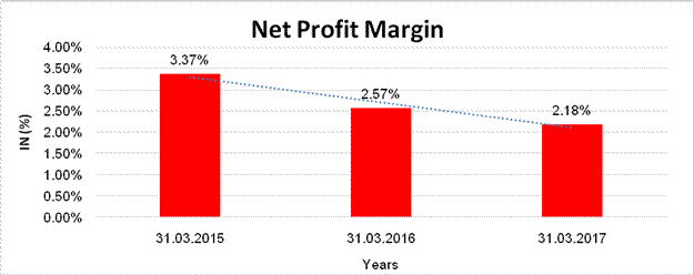 by 40.81% but has managed to maintain average profit margin of 2.17%. The rating is constrained on account of unfavourable gap between trade