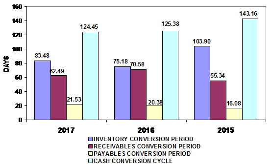 end of 2016 to 83 days at the end of 2017. This represents a negative trend.
