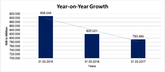 bars. For the financial year 2017, the company has marginally declined its