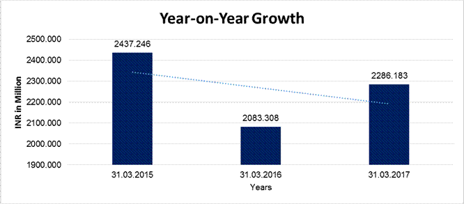 in its revenue as compared to the previous year and has reported an average